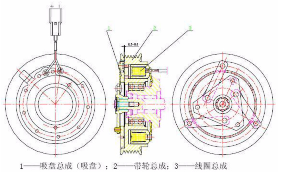 汽车空调电磁离合器是汽车发动机和汽车空调压缩机之间的一个动力传递装置,汽车空调压缩机是由汽车发动机通过电磁离合器来驱动的。汽车空调电磁离合器一般都是由带轮总成、线圈总成和驱动盘总成这三个部分组成。汽车空调电磁离合器是较为典型的机电一体化产品。