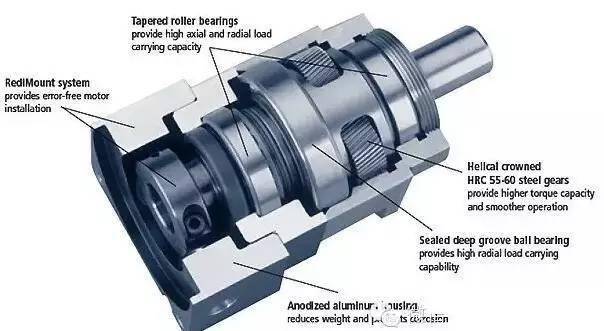 行星减速机是一种具有广泛通用性的新性减速机,内部齿轮采用20CvMnT渗碳淬火精滚滚齿工艺。整机具有结构尺寸小,输出扭矩大,速比在、效率高、性能安全可靠等特点。